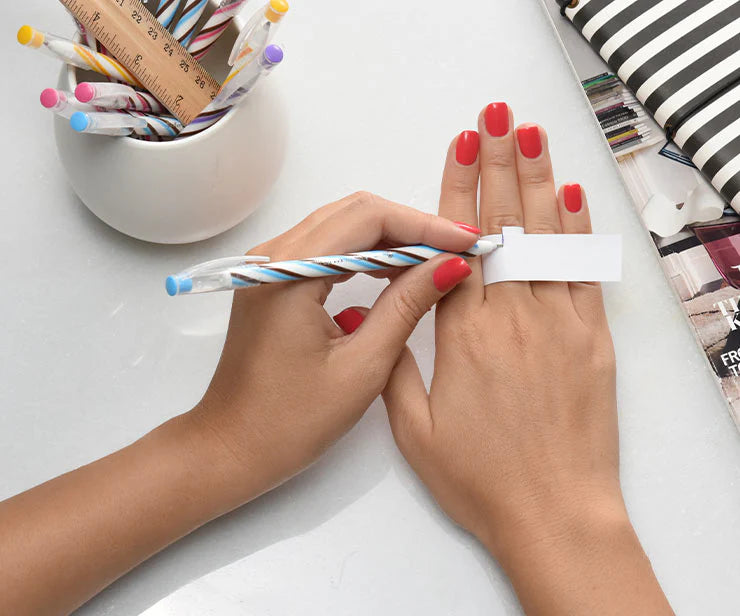 • Assicurati di misurare il dito in cui desideri indossare l’anello. Usa una matita o una penna per segnare il punto in cui la striscia di carta forma un cerchio completo e inizia a sovrapporsi